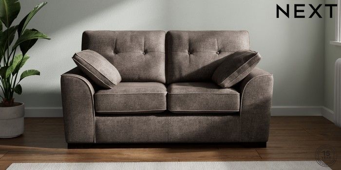 7.2.10 Buy Stamford Buttoned Back 2 Seater Small Sofa Plush Chenille Mink Brown Large Square Angle - Dark from the Next UK online shop Click here to use our accessible website