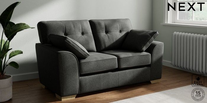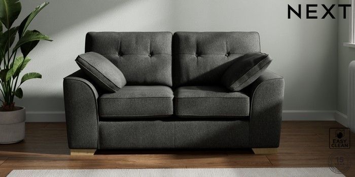 7.2.10 Buy Stamford Buttoned Back 2 Seater Small Sofa Tweedy Blend Easy Clean Charcoal Grey Large Square Angle - Light from the Next UK online shop Click here to use our accessible website