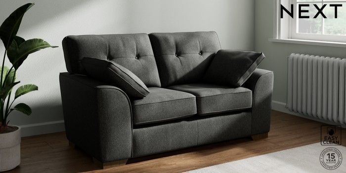 7.2.10 Buy Stamford Buttoned Back 2 Seater Small Sofa Tweedy Blend Easy Clean Charcoal Grey Large Square Angle - Mid from the Next UK online shop Click here to use our accessible website