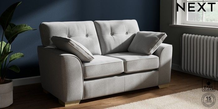 7.2.10 Buy Stamford Buttoned Back 2 Seater Small Sofa Tweedy Blend Easy Clean Light Silver Grey Large Square Angle - Light from the Next UK online shop Click here to use our accessible website