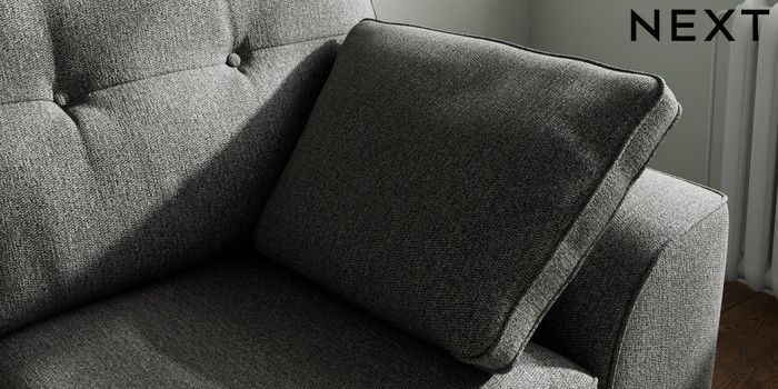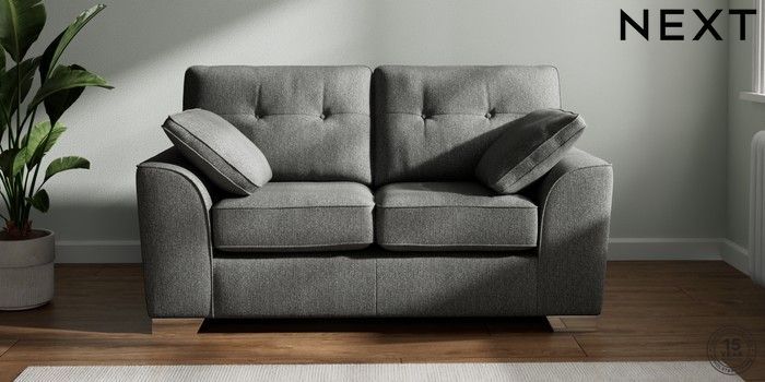 7.3.1 Buy Stamford Buttoned Back 2 Seater Small Sofa Tweedy Chenille Dark Grey Large Square Angle - Chrome Metal from the Next UK online shop Click here to use our accessible website