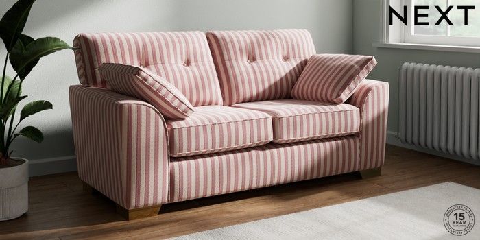 7.3.1 Buy Stamford Buttoned Back 2 Seater Sofa Bold Chenille Stripe Dark Pink Large Square Angle - Brushed Brass from the Next UK online shop Click here to use our accessible website