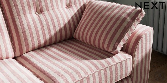 7.3.1 Buy Stamford Buttoned Back 2 Seater Sofa Bold Chenille Stripe Dark Pink Large Square Angle - Dark from the Next UK online shop Click here to use our accessible website