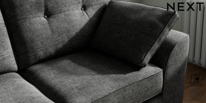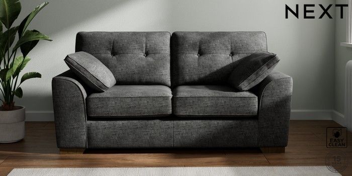 7.2.10 Buy Stamford Buttoned Back 2 Seater Sofa Boucle Weave Easy Clean Charcoal Grey Large Square Angle - Mid from the Next UK online shop Click here to use our accessible website