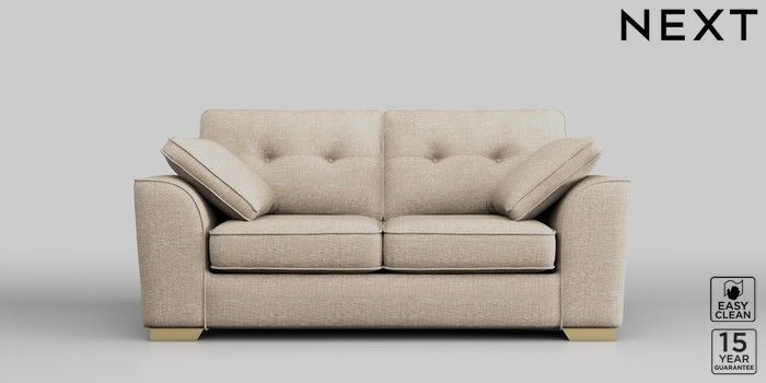 6.11.4 Buy Stamford Buttoned Back 2 Seater Sofa Boucle Weave Easy Clean Dark Natural Large Square Angle - Brushed Brass from the Next UK online shop Click here to use our accessible website