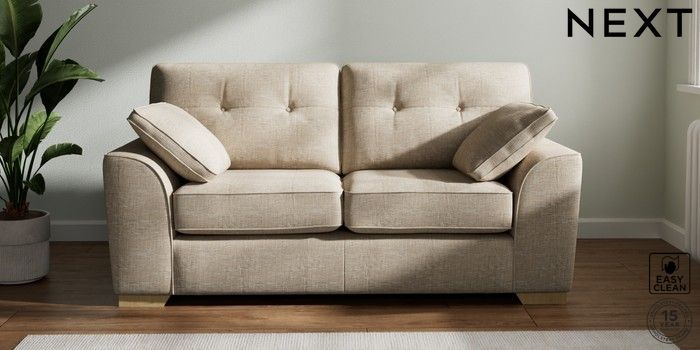 7.2.10 Buy Stamford Buttoned Back 2 Seater Sofa Boucle Weave Easy Clean Dark Natural Large Square Angle - Light from the Next UK online shop Click here to use our accessible website
