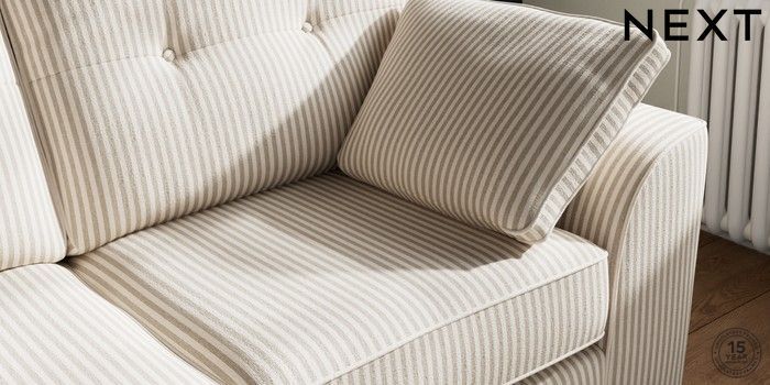7.3.1 Buy Stamford Buttoned Back 2 Seater Sofa Chenille Stripe Natural Large Square Angle - Brushed Brass from the Next UK online shop Click here to use our accessible website