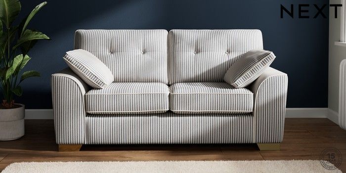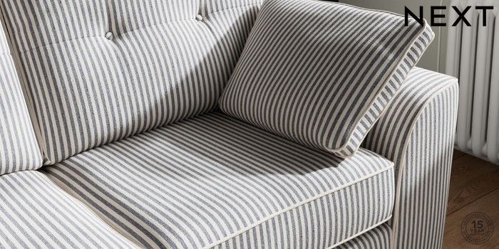 7.3.1 Buy Stamford Buttoned Back 2 Seater Sofa Chenille Stripe Slate Blue Large Square Angle - Brushed Brass from the Next UK online shop Click here to use our accessible website