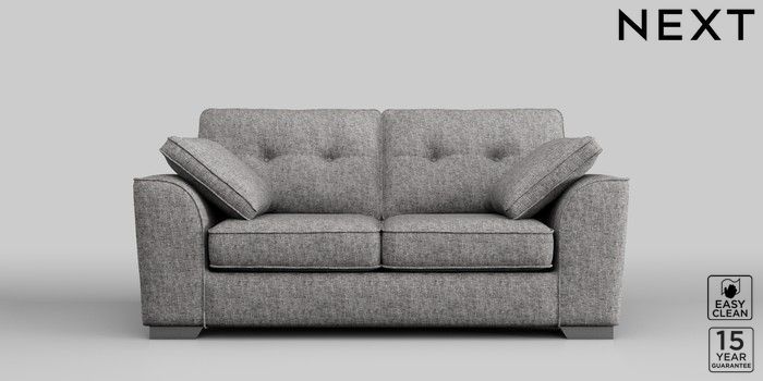 6.11.4 Buy Stamford Buttoned Back 2 Seater Sofa Chunky Boucle Easy Clean Light Grey Large Square Angle - Gunmetal from the Next UK online shop Click here to use our accessible website