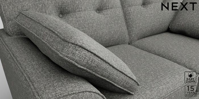 6.11.4 Buy Stamford Buttoned Back 2 Seater Sofa Chunky Boucle Easy Clean Mid Grey Large Square Angle - Chrome Metal from the Next UK online shop Click here to use our accessible website
