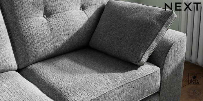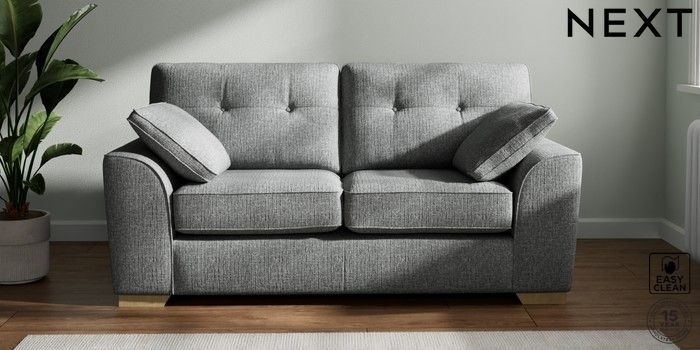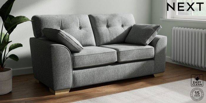 7.2.10 Buy Stamford Buttoned Back 2 Seater Sofa Chunky Boucle Easy Clean Mid Grey Large Square Angle - Light from the Next UK online shop Click here to use our accessible website