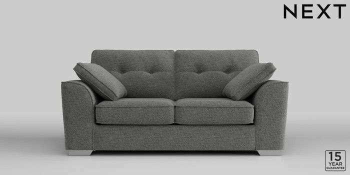 6.11.4 Buy Stamford Buttoned Back 2 Seater Sofa Chunky Chenille Dark Grey Large Square Angle - Chrome Metal from the Next UK online shop Click here to use our accessible website