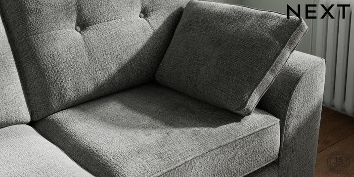 7.2.10 Buy Stamford Buttoned Back 2 Seater Sofa Chunky Chenille Dark Grey Large Square Angle - Mid from the Next UK online shop Click here to use our accessible website