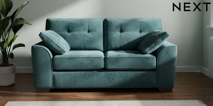 7.2.6 Buy Stamford Buttoned Back 2 Seater Sofa Chunky Chenille Mid Teal Green Large Square Angle - Gunmetal from the Next UK online shop Click here to use our accessible website