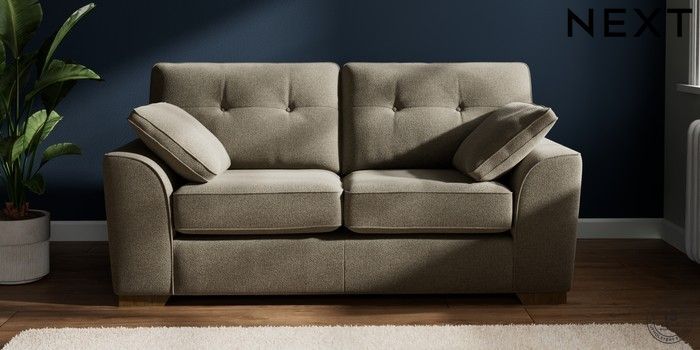 7.2.10 Buy Stamford Buttoned Back 2 Seater Sofa Chunky Marl Light Olive Green Large Square Angle - Mid from the Next UK online shop Click here to use our accessible website