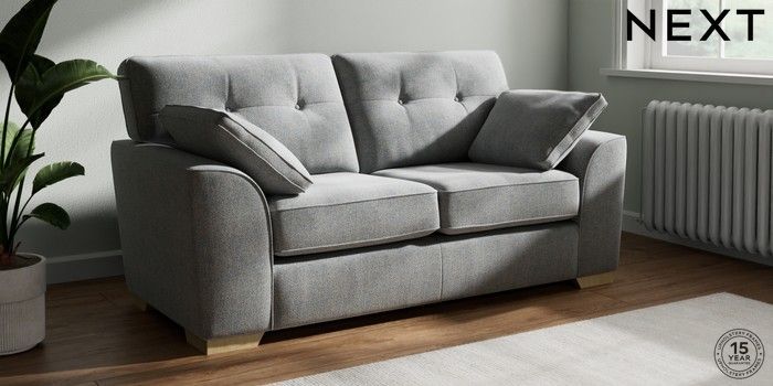 7.2.10 Buy Stamford Buttoned Back 2 Seater Sofa Chunky Marl Mid Grey Large Square Angle - Light from the Next UK online shop Click here to use our accessible website
