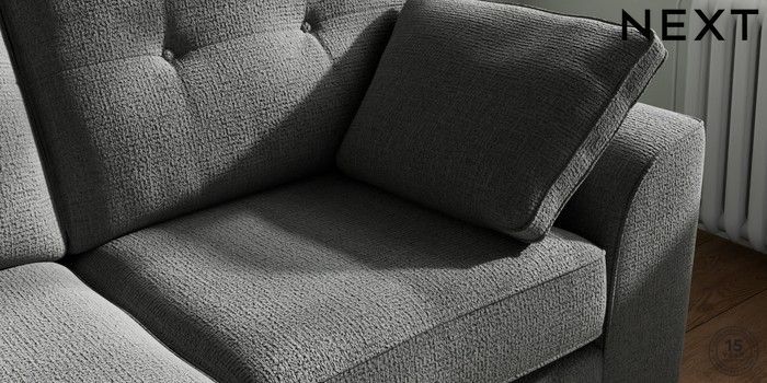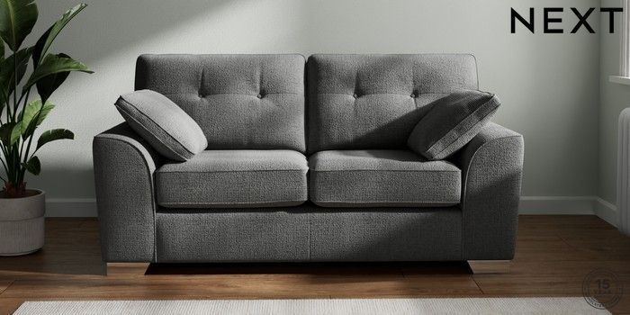7.2.10 Buy Stamford Buttoned Back 2 Seater Sofa Chunky Texture Dark Grey Large Square Angle - Chrome Metal from the Next UK online shop Click here to use our accessible website