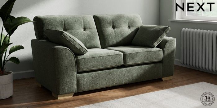 7.2.10 Buy Stamford Buttoned Back 2 Seater Sofa Chunky Texture Mid Forest Green Large Square Angle - Light from the Next UK online shop Click here to use our accessible website