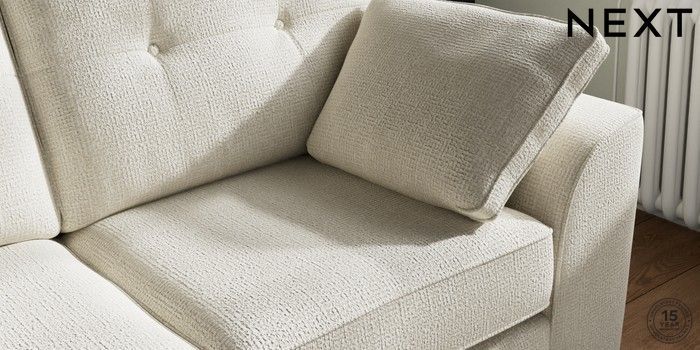 7.2.10 Buy Stamford Buttoned Back 2 Seater Sofa Chunky Texture Oyster Large Square Angle - Chrome Metal from the Next UK online shop Click here to use our accessible website
