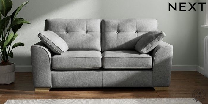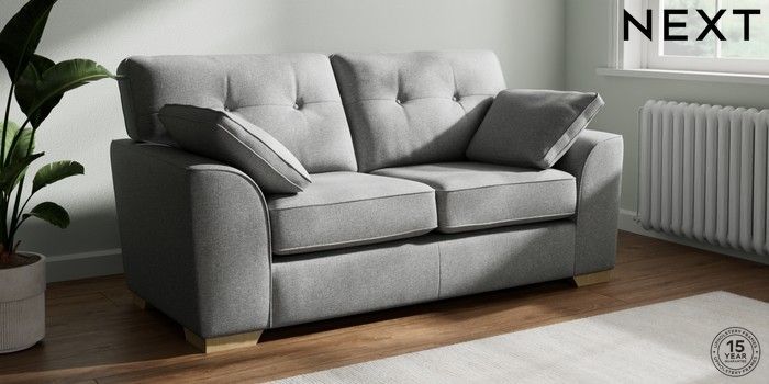 7.2.10 Buy Stamford Buttoned Back 2 Seater Sofa Chunky Weave Mid Grey Large Square Angle - Light from the Next UK online shop Click here to use our accessible website
