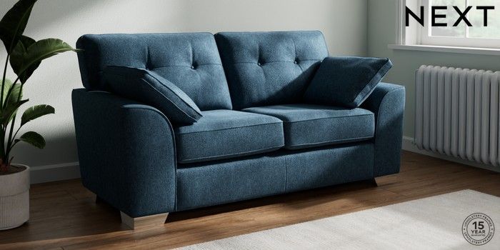 7.2.10 Buy Stamford Buttoned Back 2 Seater Sofa Cotswold Chenille Dark Blue Large Square Angle - Chrome Metal from the Next UK online shop Click here to use our accessible website