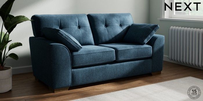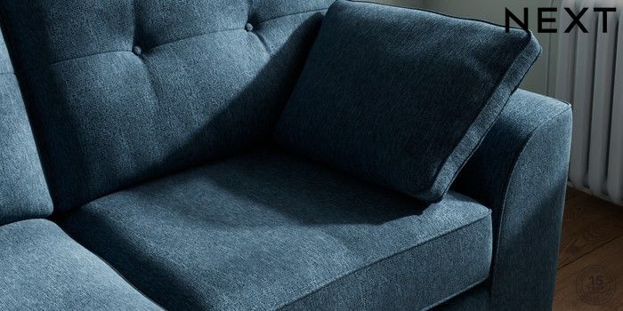 7.2.10 Buy Stamford Buttoned Back 2 Seater Sofa Cotswold Chenille Dark Blue Large Square Angle - Mid from the Next UK online shop Click here to use our accessible website