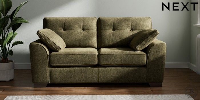 7.2.6 Buy Stamford Buttoned Back 2 Seater Sofa Cotswold Chenille Dark Green Large Square Angle - Gunmetal from the Next UK online shop Click here to use our accessible website