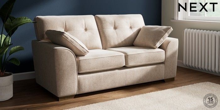 7.2.10 Buy Stamford Buttoned Back 2 Seater Sofa Cotswold Chenille Light Natural Large Square Angle - Mid from the Next UK online shop Click here to use our accessible website