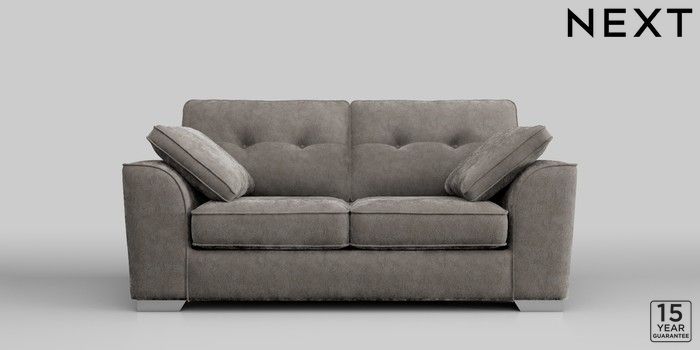 6.11.8 Buy Stamford Buttoned Back 2 Seater Sofa Distressed Velour French Grey Large Square Angle - Chrome Metal from the Next UK online shop Click here to use our accessible website