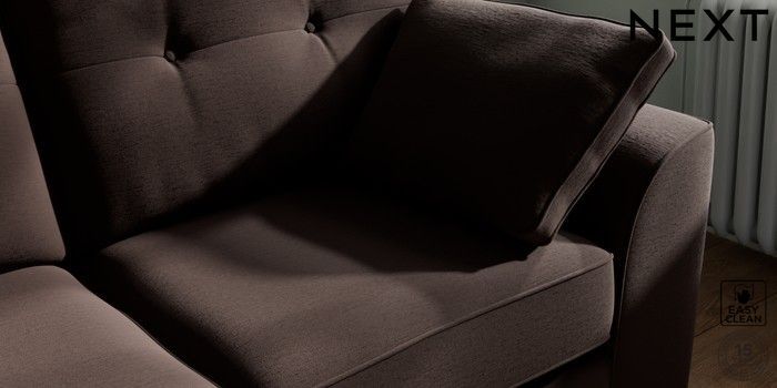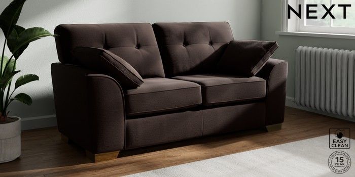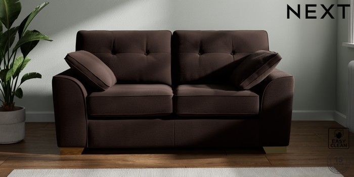 7.2.10 Buy Stamford Buttoned Back 2 Seater Sofa Fine Chenille Easy Clean Chocolate Brown Large Square Angle - Brushed Brass from the Next UK online shop Click here to use our accessible website
