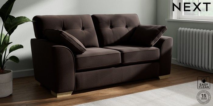 7.2.10 Buy Stamford Buttoned Back 2 Seater Sofa Fine Chenille Easy Clean Chocolate Brown Large Square Angle - Light from the Next UK online shop Click here to use our accessible website