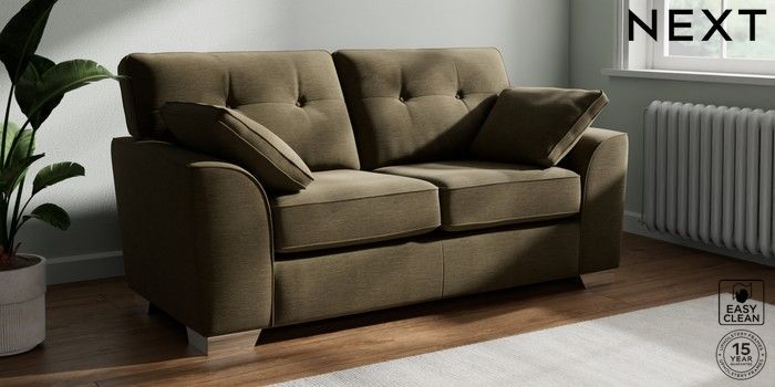 7.2.10 Buy Stamford Buttoned Back 2 Seater Sofa Fine Chenille Easy Clean Dark Moss Green Large Square Angle - Chrome Metal from the Next UK online shop Click here to use our accessible website