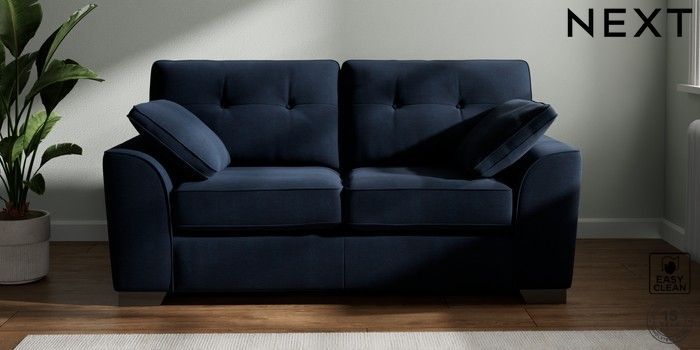 7.2.6 Buy Stamford Buttoned Back 2 Seater Sofa Fine Chenille Easy Clean Dark Navy Blue Large Square Angle - Gunmetal from the Next UK online shop Click here to use our accessible website