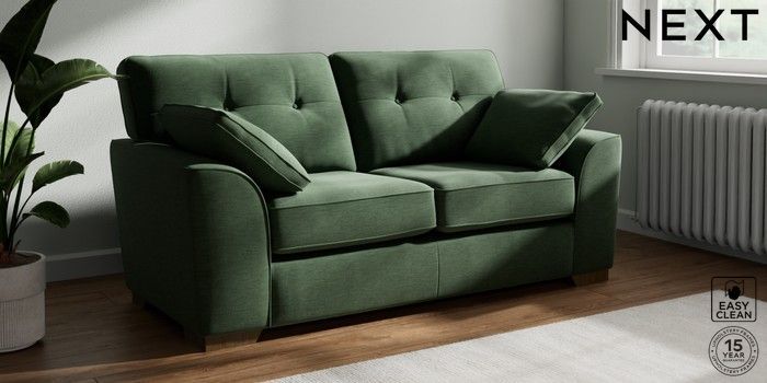 7.2.10 Buy Stamford Buttoned Back 2 Seater Sofa Fine Chenille Easy Clean Mid Khaki Green Large Square Angle - Mid from the Next UK online shop Click here to use our accessible website