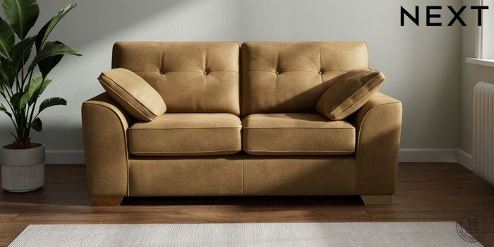 7.2.6 Buy Stamford Buttoned Back 2 Seater Sofa Luxe Chenille Honey Yellow Large Square Angle - Brushed Brass from the Next UK online shop Click here to use our accessible website