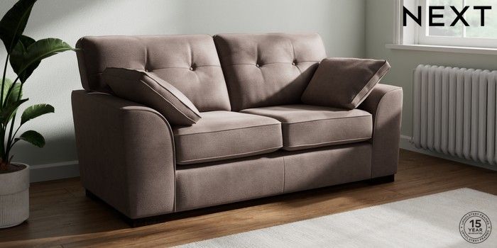 7.2.10 Buy Stamford Buttoned Back 2 Seater Sofa Luxe Chenille Mink Brown Large Square Angle - Dark from the Next UK online shop Click here to use our accessible website