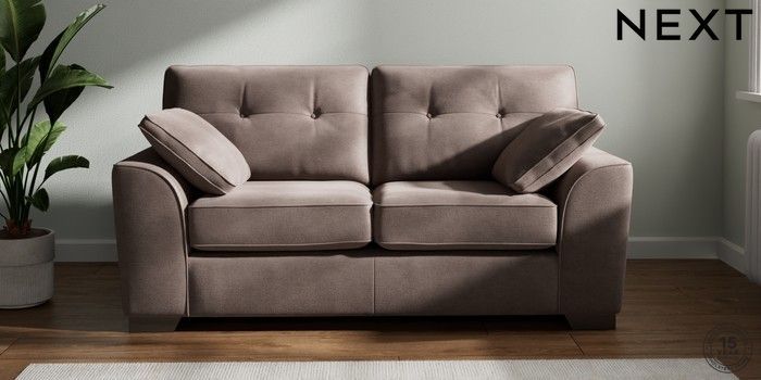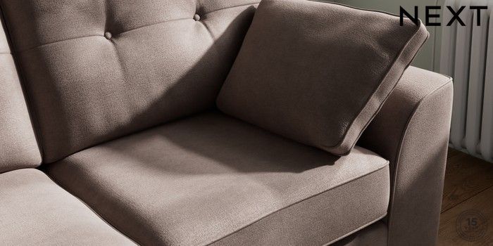7.2.10 Buy Stamford Buttoned Back 2 Seater Sofa Luxe Chenille Mink Brown Large Square Angle - Gunmetal from the Next UK online shop Click here to use our accessible website
