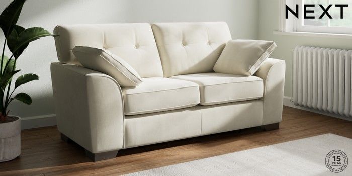 7.0.3 Buy Stamford Buttoned Back 2 Seater Sofa Luxe Chenille Oyster Large Square Angle - Gunmetal from the Next UK online shop Click here to use our accessible website
