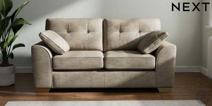 6.12.1 Buy Stamford Buttoned Back 2 Seater Sofa Monza Faux Leather Easy Clean Mink Brown Large Square Angle - Brushed Brass from the Next UK online shop Click here to use our accessible website