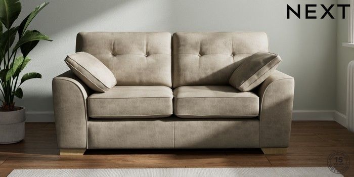 7.2.6 Buy Stamford Buttoned Back 2 Seater Sofa Monza Faux Leather Easy Clean Mink Brown Large Square Angle - Light from the Next UK online shop Click here to use our accessible website