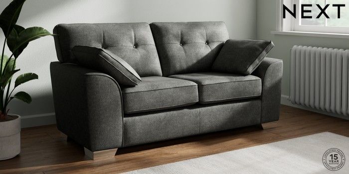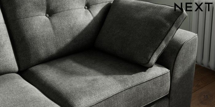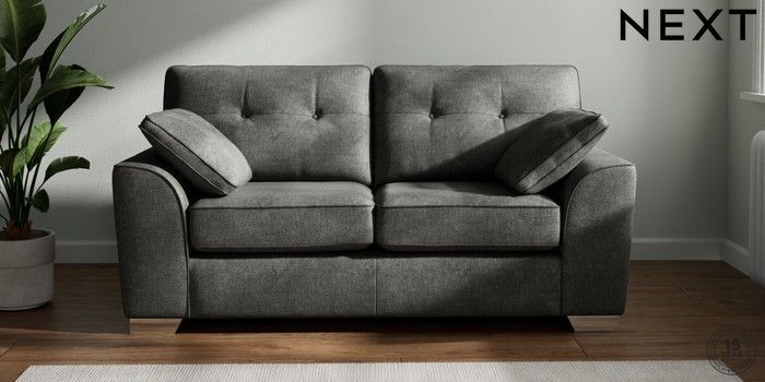7.2.10 Buy Stamford Buttoned Back 2 Seater Sofa Plush Chenille Dark Grey Large Square Angle - Chrome Metal from the Next UK online shop Click here to use our accessible website