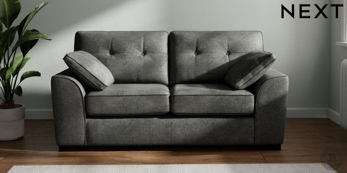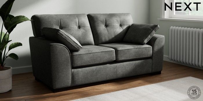 7.2.10 Buy Stamford Buttoned Back 2 Seater Sofa Plush Chenille Dark Grey Large Square Angle - Dark from the Next UK online shop Click here to use our accessible website