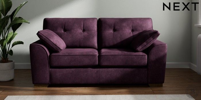 7.2.10 Buy Stamford Buttoned Back 2 Seater Sofa Plush Chenille Dark Plum Purple Large Square Angle - Mid from the Next UK online shop Click here to use our accessible website