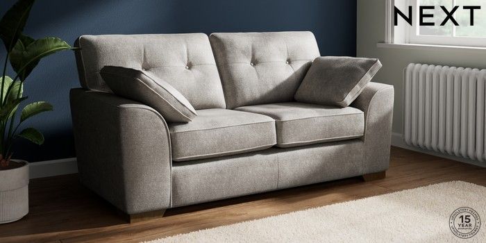 7.2.10 Buy Stamford Buttoned Back 2 Seater Sofa Plush Chenille Light Grey Large Square Angle - Mid from the Next UK online shop Click here to use our accessible website