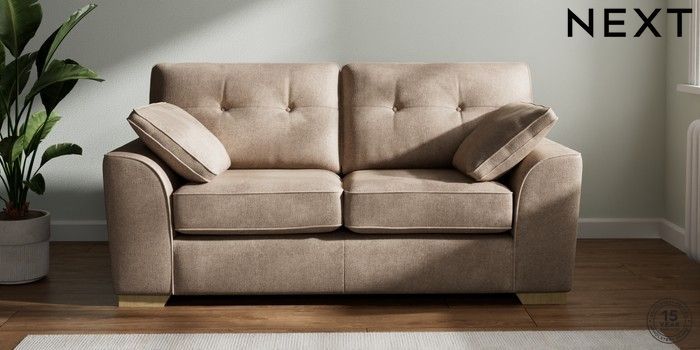 7.2.10 Buy Stamford Buttoned Back 2 Seater Sofa Plush Chenille Mid Natural Large Square Angle - Light from the Next UK online shop Click here to use our accessible website