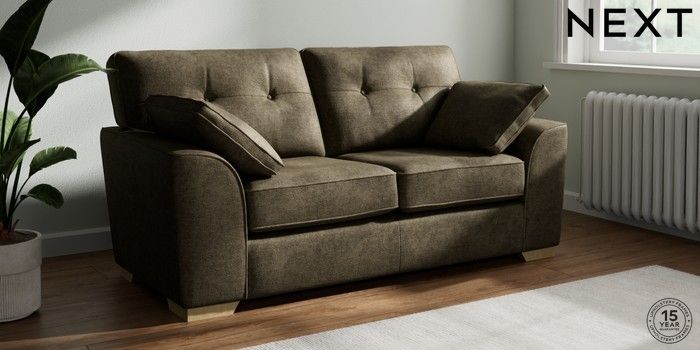 7.2.10 Buy Stamford Buttoned Back 2 Seater Sofa Plush Chenille Moss Green Large Square Angle - Light from the Next UK online shop Click here to use our accessible website