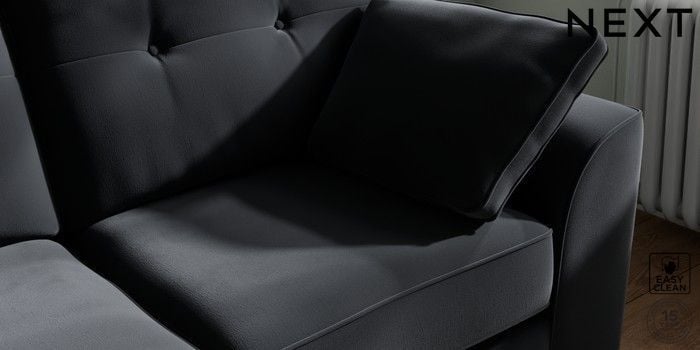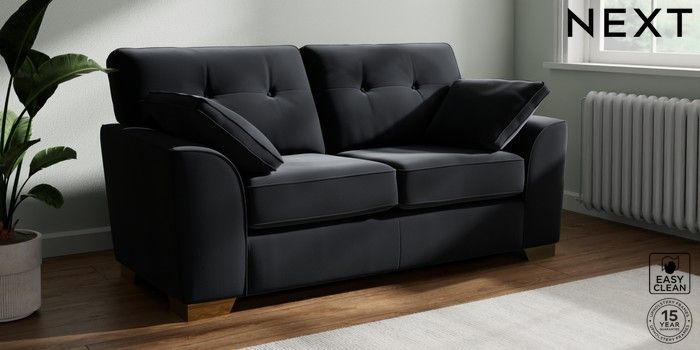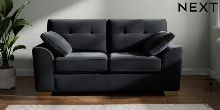 7.2.10 Buy Stamford Buttoned Back 2 Seater Sofa Plush Velvet Easy Clean Charcoal Grey Large Square Angle - Brushed Brass from the Next UK online shop Click here to use our accessible website
