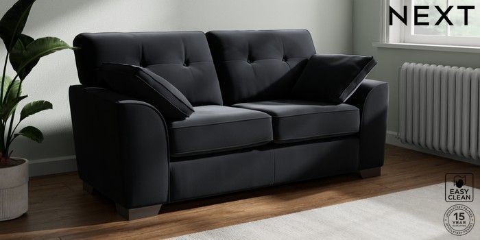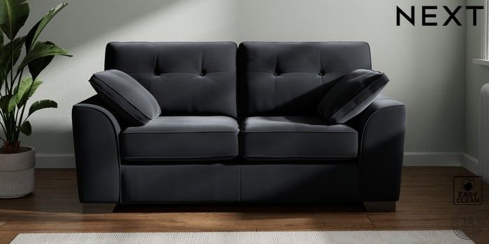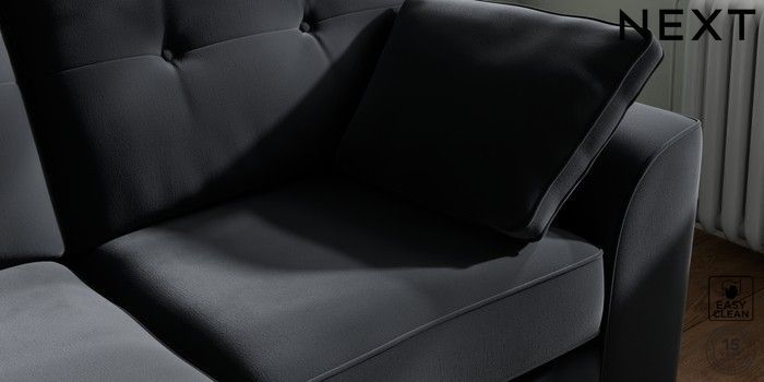 7.3.1 Buy Stamford Buttoned Back 2 Seater Sofa Plush Velvet Easy Clean Charcoal Grey Large Square Angle - Gunmetal from the Next UK online shop Click here to use our accessible website