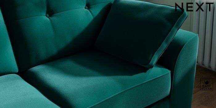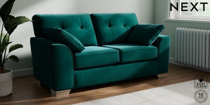 7.3.1 Buy Stamford Buttoned Back 2 Seater Sofa Plush Velvet Easy Clean Juniper Green Large Square Angle - Chrome Metal from the Next UK online shop Click here to use our accessible website