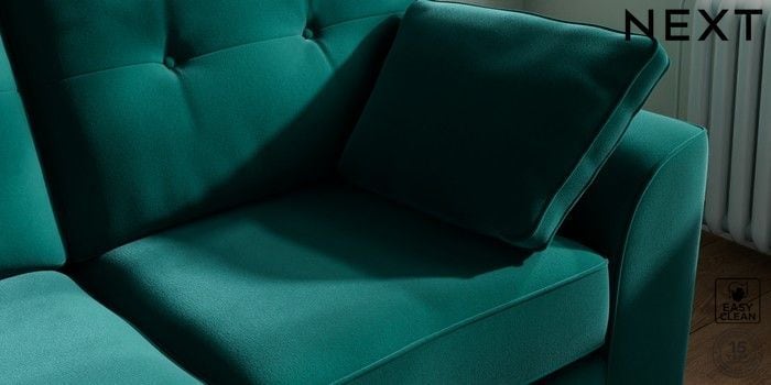 7.2.10 Buy Stamford Buttoned Back 2 Seater Sofa Plush Velvet Easy Clean Juniper Green Large Square Angle - Light from the Next UK online shop Click here to use our accessible website